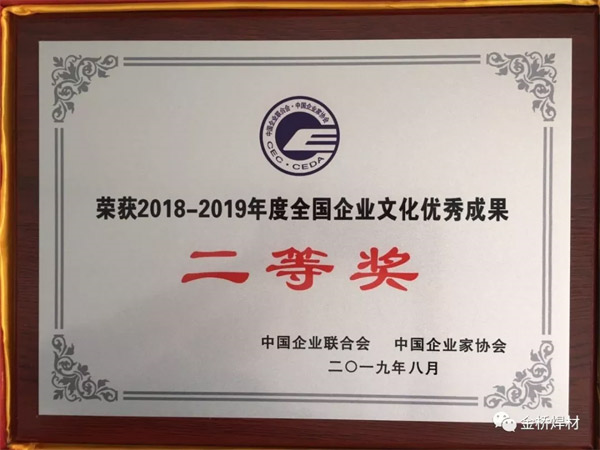 金橋焊材集團(tuán)榮獲“2018-2019年度全國企業(yè)文化優(yōu)秀成果二等獎(jiǎng)”