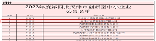 2023年,新材料公司深入落實(shí)集團(tuán)全面創(chuàng)新發(fā)展戰(zhàn)略,通過產(chǎn)品分級(jí)、原料資源開發(fā)、技術(shù)及工藝創(chuàng)新、組織效能優(yōu)化等舉措,加速產(chǎn)品研發(fā),加快高成長企業(yè)梯度培育,在生產(chǎn)經(jīng)營、企業(yè)培育、組織建設(shè)等方面逐步邁向高質(zhì)量發(fā)展。天津市金橋新材料有限公司被評(píng)定為“2023年第四批入庫雛鷹企業(yè)”,“第9批入庫科技型中小企業(yè)”,“第四批創(chuàng)新型中小企業(yè)”。