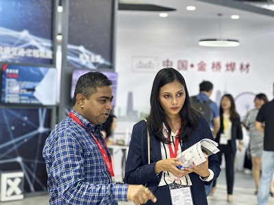 產(chǎn)品視頻展示區(qū)和焊接試驗區(qū)人來人往,熱鬧非凡。杭蕭鋼構客戶詳細了解了80SD高強埋弧產(chǎn)品,對產(chǎn)品性能和價格進行了接洽溝通,約定后期可進行試用;秦皇島萬基鋼管客戶詢問了壓力容器用H09MnNiDR埋弧焊絲及燒結208DR在該行業(yè)的應用情況,接洽了后期產(chǎn)品試驗時間和購買需求;來自烏克蘭、阿聯(lián)酋、印度、塞爾維亞,俄羅斯、德國、韓國的多名國際客戶,詢問了集團高端藥芯焊絲產(chǎn)品,饒有興趣地查看了集團新推出的一體化焊接方案,對金橋焊材雄厚的綜合發(fā)展實力表示了高度稱贊。
