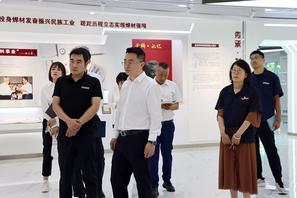 會前,王文雷一行參觀了高速鍍車間、國家級企業(yè)技術(shù)中心和金橋記憶展館,對焊材行業(yè)進(jìn)行深入了解,對金橋集團(tuán)數(shù)字化、智能化、綠色化發(fā)展表示稱贊。